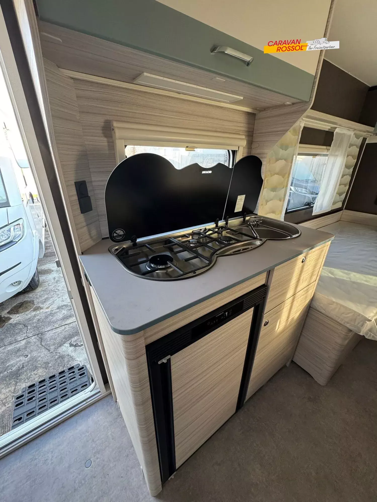 - Dynamik-Paket (Sicherheitskupplung, Stoßdämpfer, Großer 44 l Frischwassertank, Mobiler 22 l Abwassertank, Reserveradhalterung im Gasflaschenkasten, Stauraumklappe hinten rechts 1000x420 mm)