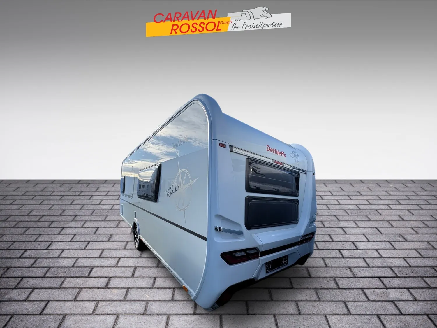 - Dethleffs Camper Rallye IC Sondermodell (Glattblech Außenwände, 17? Leichtmetallräder, Stabilformstützen mit Big Foot, Vollgummi Stützrad mit Stützlastanzeige, Rangiergriffe in Chrom-Ausführung, Heckleuchtenträger und Bugfront mit hohem Aufsatz und Dachreling, AL-KO »ATC Trailer Control«, Truma »DuoControl« mit Crashsensor und Eis-Ex, Auflastung 2,0 t, Multifunktions-Außenanschluss 12 V, 230 V, TV, SAT, Duschpaket inkl. Duscharmatur, Duschvorhang & City-Wasseranschluss, Dachklimaanlage, Elektrik-Autark Ausstattung, Indirekte Beleuchtung, Gasaußensteckdose, Wohnraumtür mit Fenster, ICLINE Beklebung »Camper Rally«)