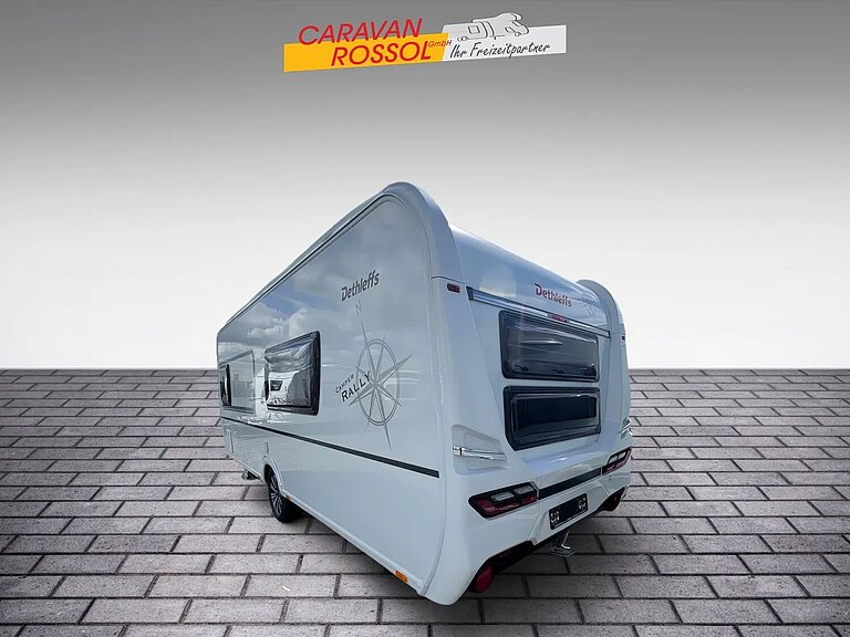 - Dethleffs Camper Rally IC Sondermodell (Glattblech Außenwände, 17?, Leichtmetallräder, Stabilformstützen mit Big Foot, Vollgummi Stützrad mit Stützlastanzeige, Rangiergriffe in Chrom-Ausführung, Heckleuchtenträger und Bugfront mit hohem Aufsatz und Dachreling, AL-KO »ATC Trailer Control«, Truma »DuoControl« mit Crashsensor und Eis-Ex, Auflastung 2,0 t, Multifunktions-Außenanschluss 12 V, 230 V, TV, SAT, Duschpaket inkl. Duscharmatur, Duschvorhang & City-Wasseranschluss, Dachklimaanlage, Elektrik-Autark Ausstattung, Indirekte Beleuchtung, Gasaußensteckdose, Wohnraumtür mit Fenster, ICLINE Beklebung »Camper Rally«)
