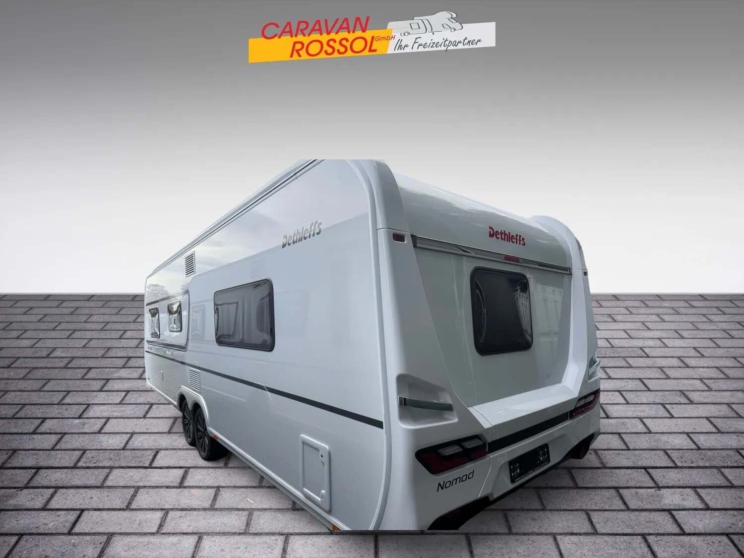 - Styling-Paket weiß (Tandemachser) (Außenblech in Glattblech weiß, 17" Alufelgen im Dethleffs-Design (Tandemachser), Deichselabdeckung, Großflächige Abstützfüße, 4 St., Vollgummi-Stützrad mit Stützlastanzeige, Rangiergriffe in Chrom-Ausführung, Heckleuchtenträger mit hohem Aufsatz und Dachreling, Bugfront mit hohem Aufsatz und Dachreling)