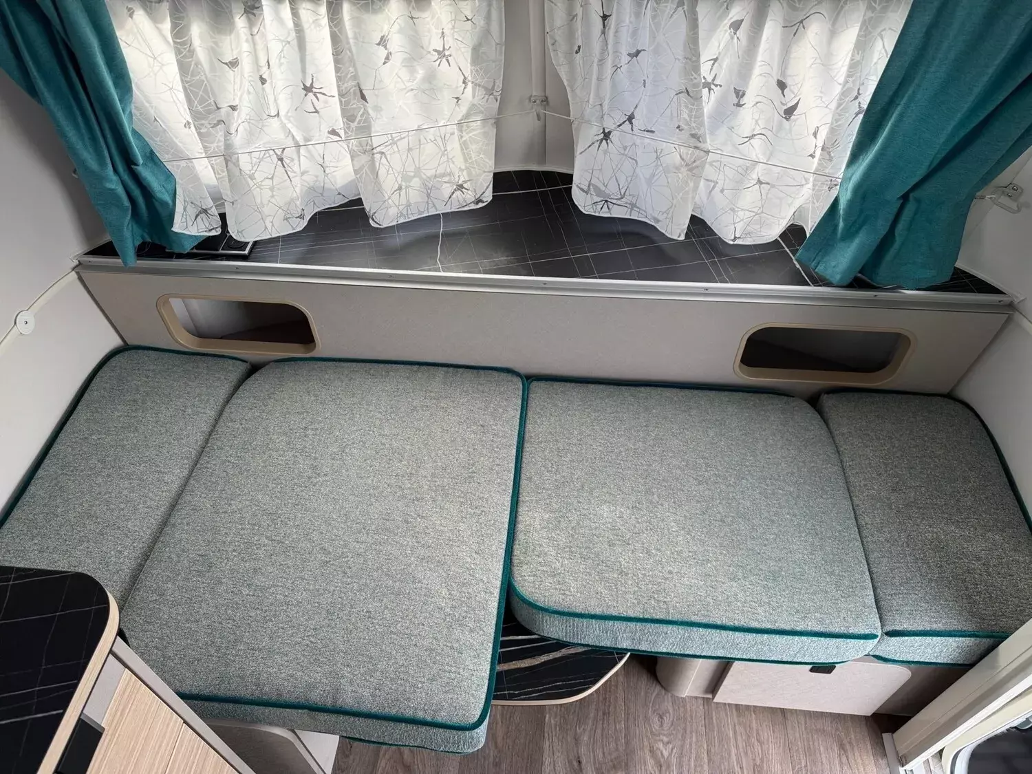 - Fenster ausstellbar mit Verdunkelungsrollo und Moskitonetz (Heck links)