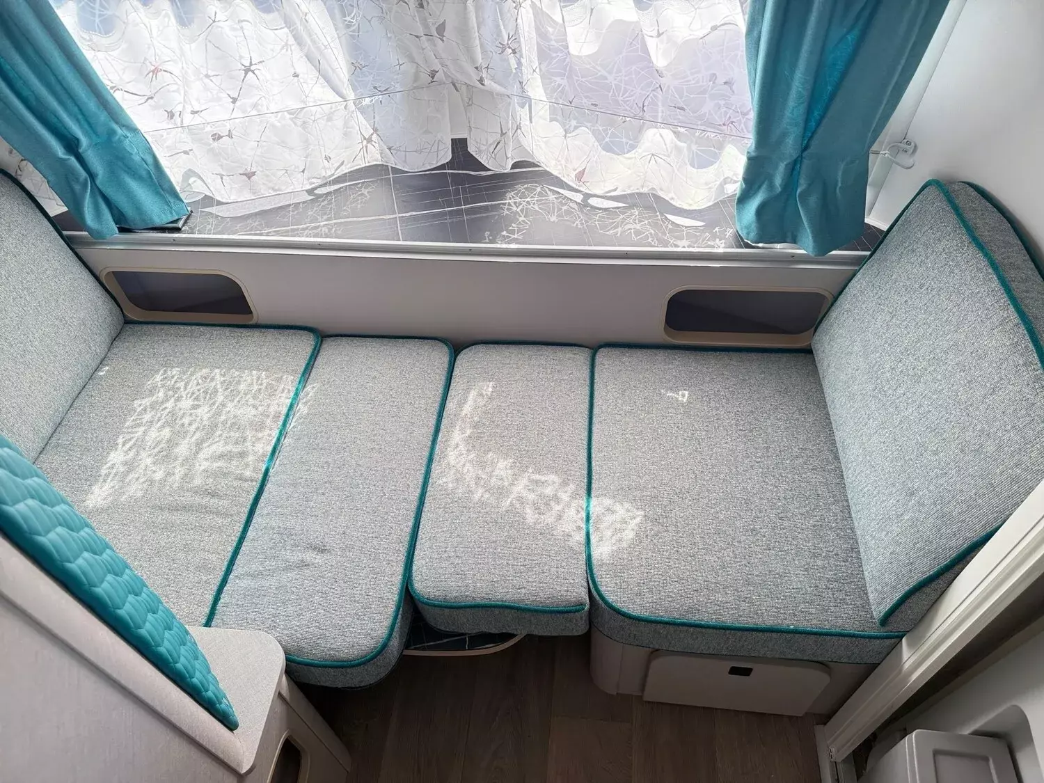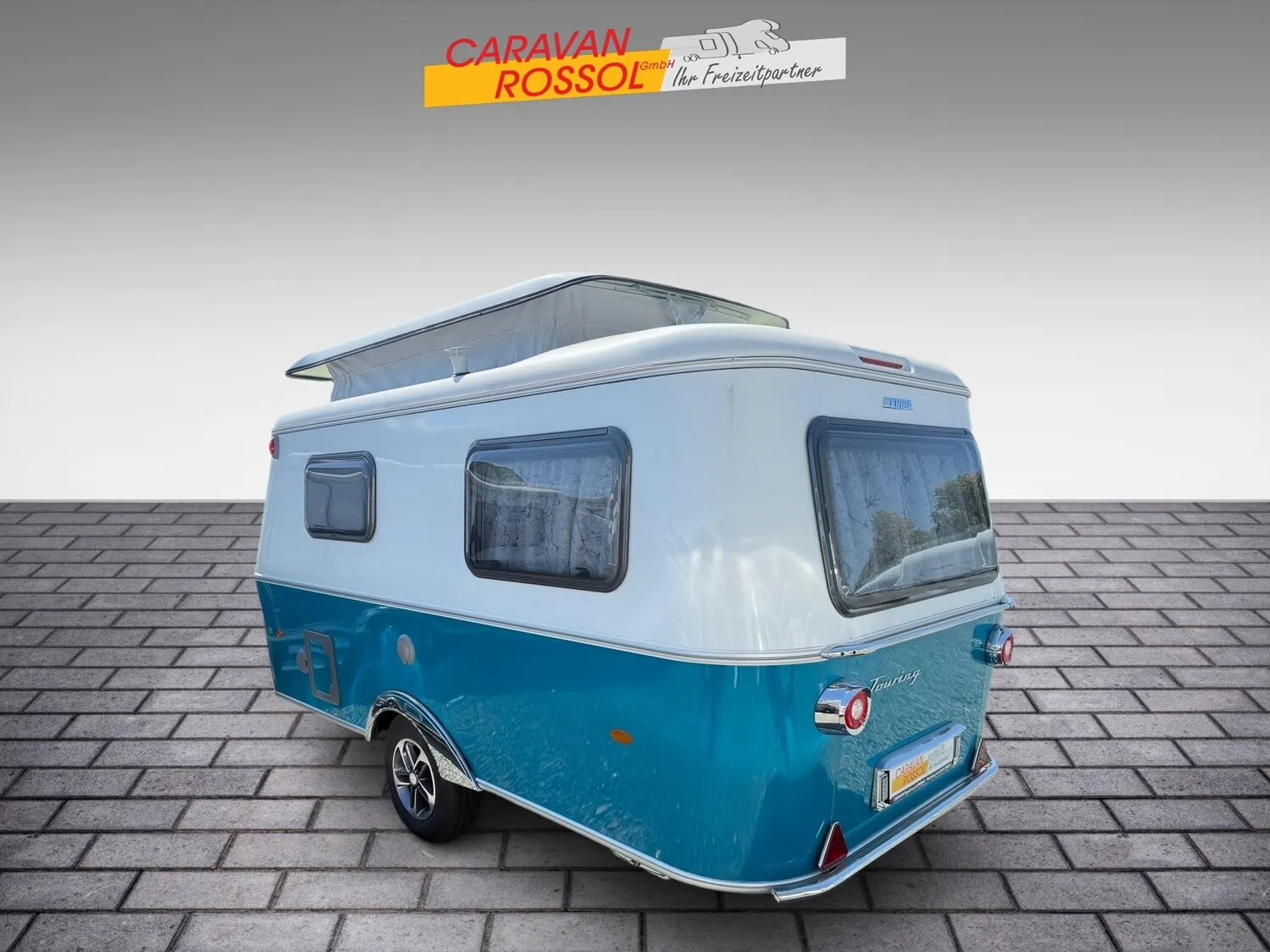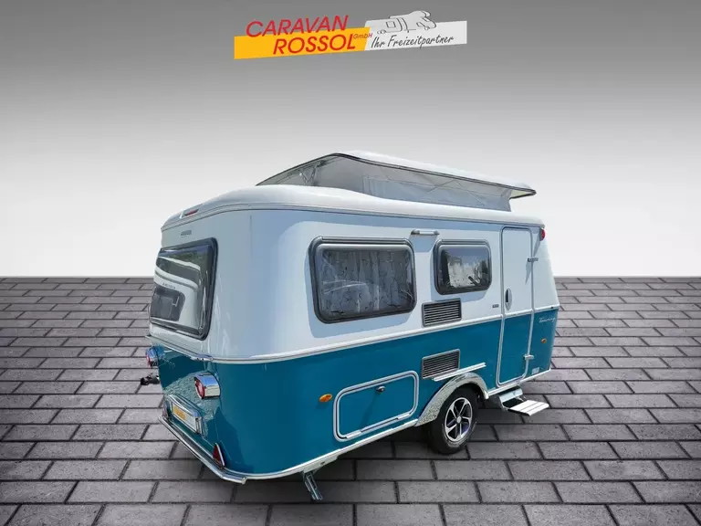 - Harbour Blue Edition (Seitenwände, Bug und Heck in Glattblech, Farbe White Harbour Blue, Stoffkombination Orlando für Ausstattungslinie Urban, Möbeldekor Tindari, Chrompaket mit Außenanbauteilen in Chrom und Radlaufblende sowie Rückleuchten in Retrodesign, Leichtmetallfelgen ERIBA 5-Stern-Doppelspeiche, anthrazit, Steinschlagschutzblech, Bumper aus Edelstahl, Ambientelicht XL mit indirektem Licht oberhalb der Dachstauschränke und zwei zusätzliche ERIBA Multifunktions-Akkuleuchten, 2 Kissen mit Bezug)