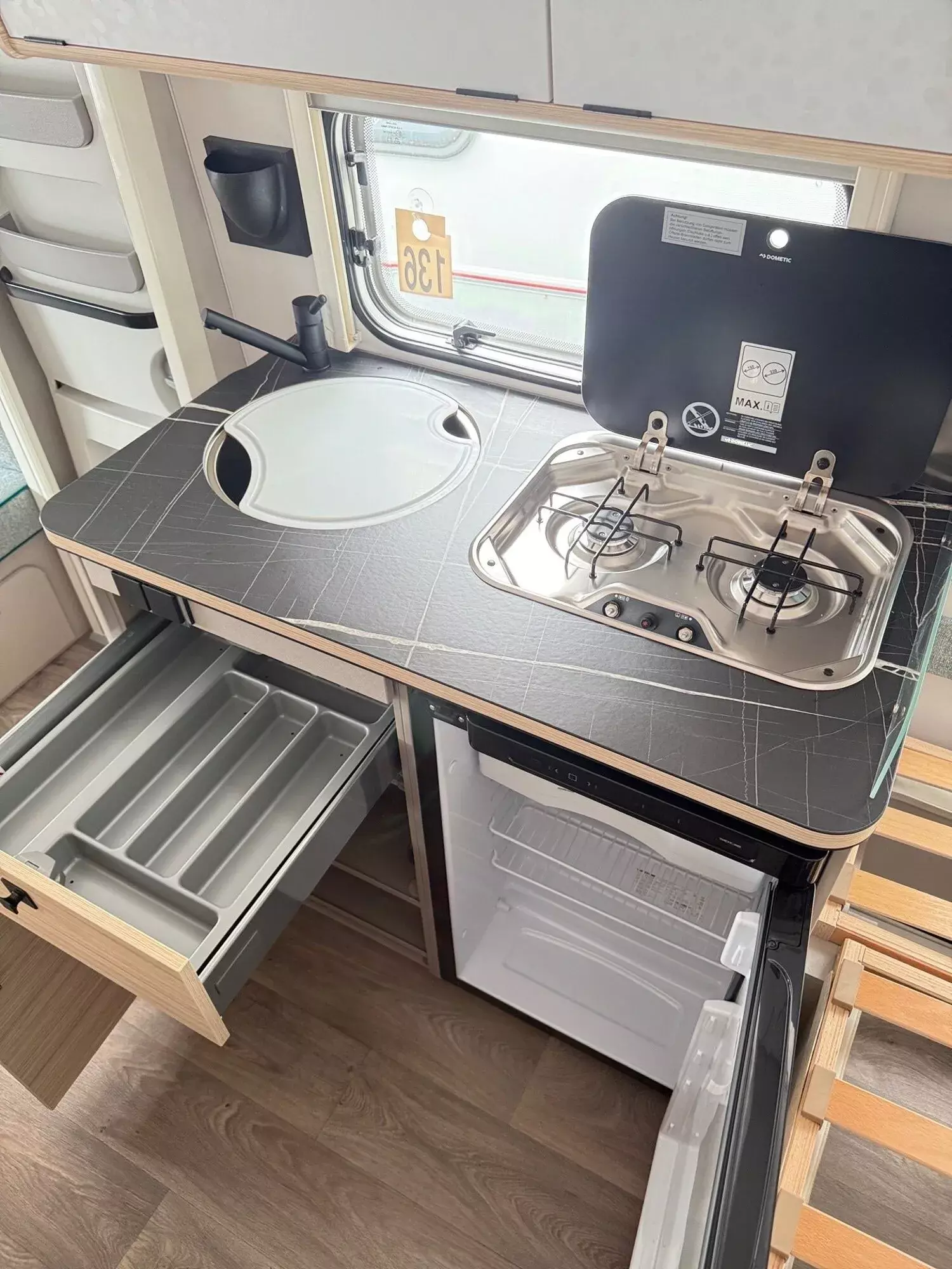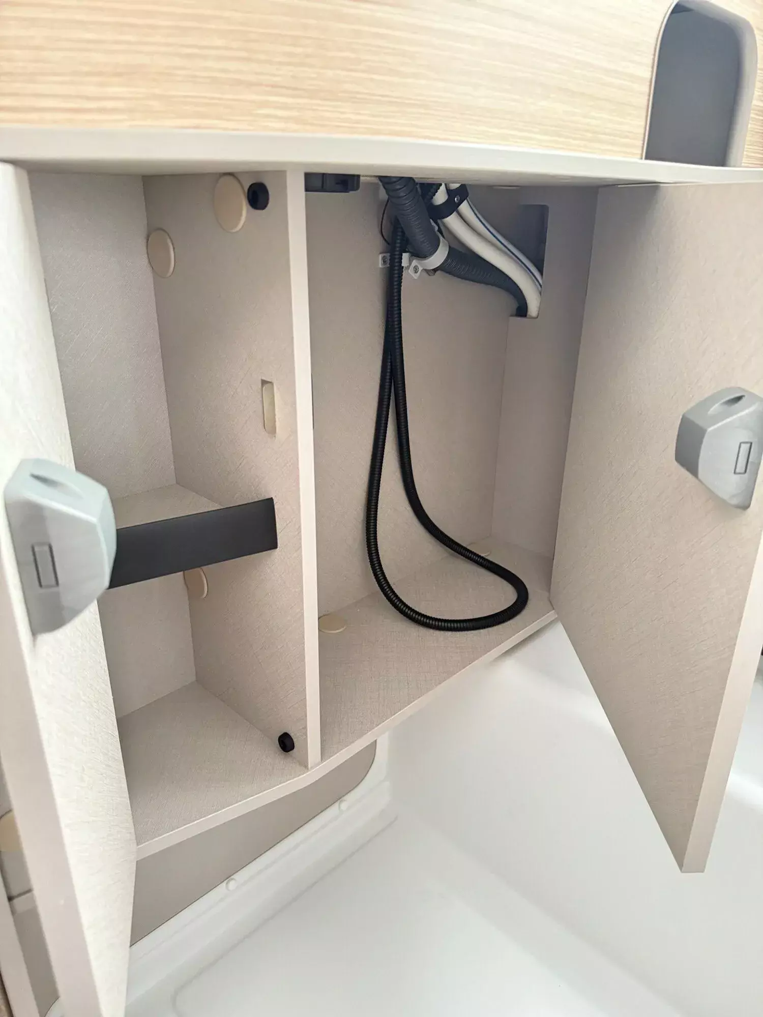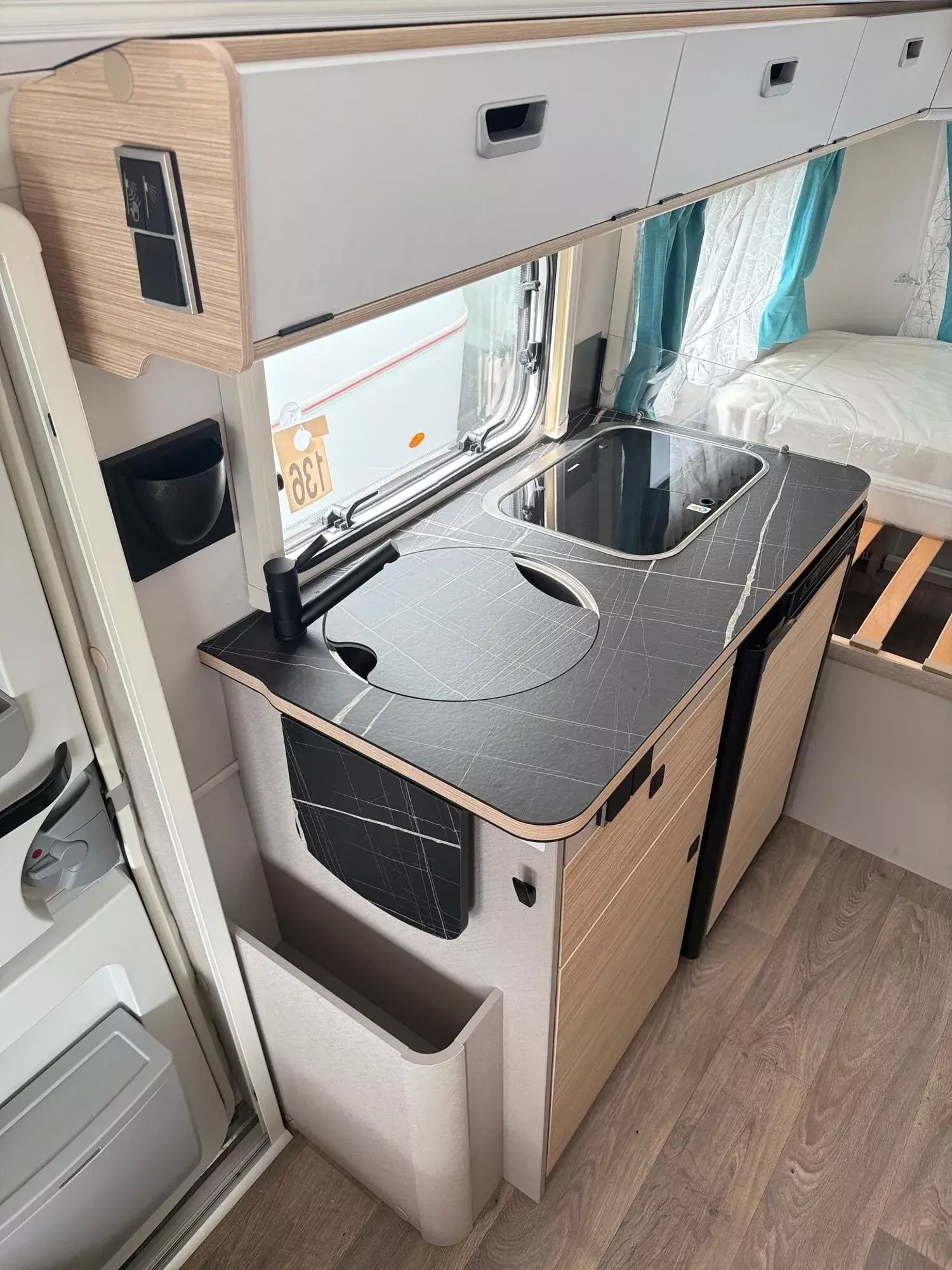 • Komfort-Paket (Fliegenschutz-Rolltür (gesamte Türhöhe), bedienfreundlich durch seitliche Führung, Komfort-Plissee-Rollos, Steckdosenpaket (2 x 230 V Steckdosen und 1 x USB-Doppelsteckdose), Abfalleimer in Eingangstür integriert, Spülenabdeckung mit Schneidebrett für Edelstahlspüle, Zusätzlicher Vergrößerungsspiegel mit Magnethalterung)