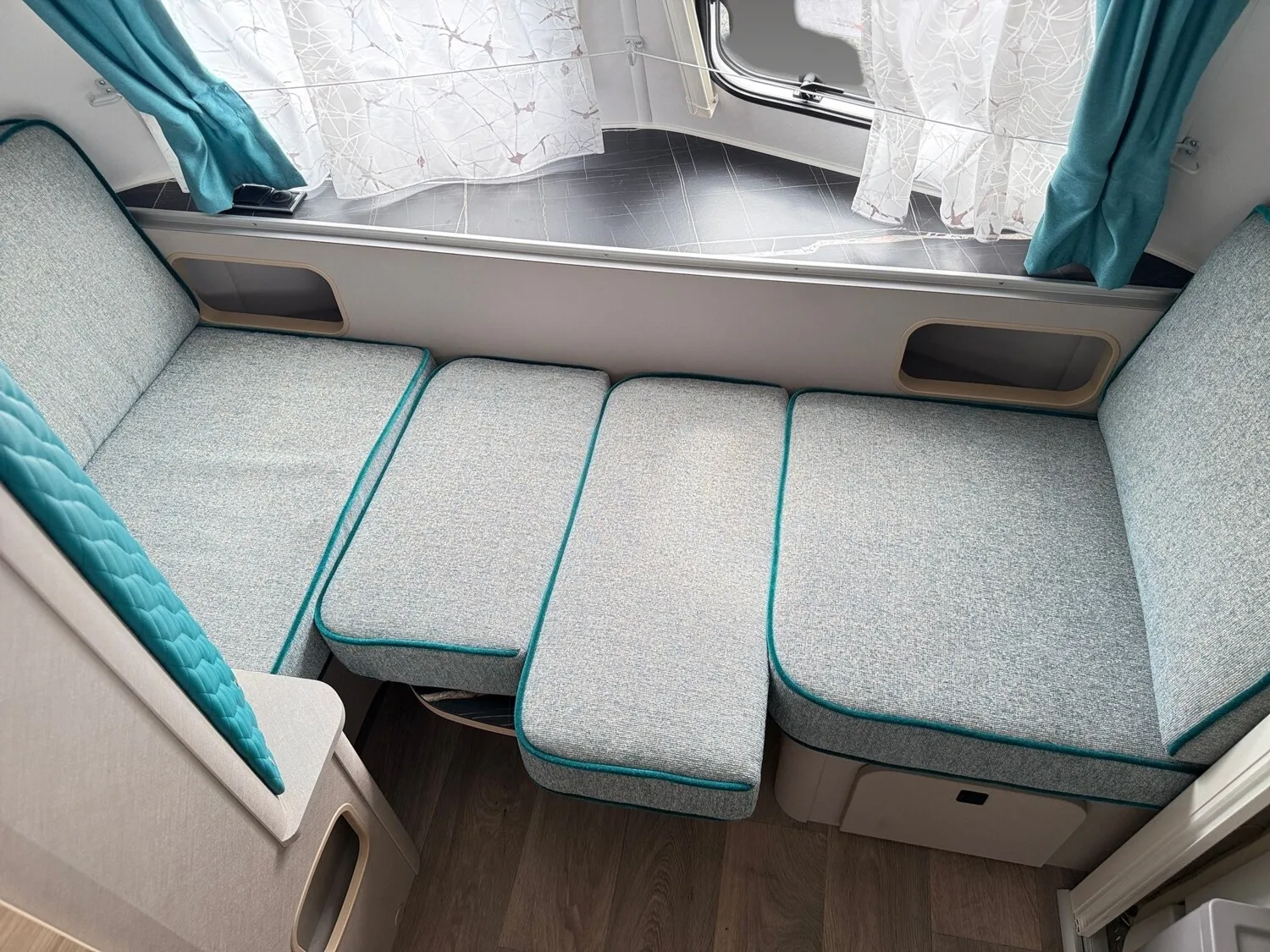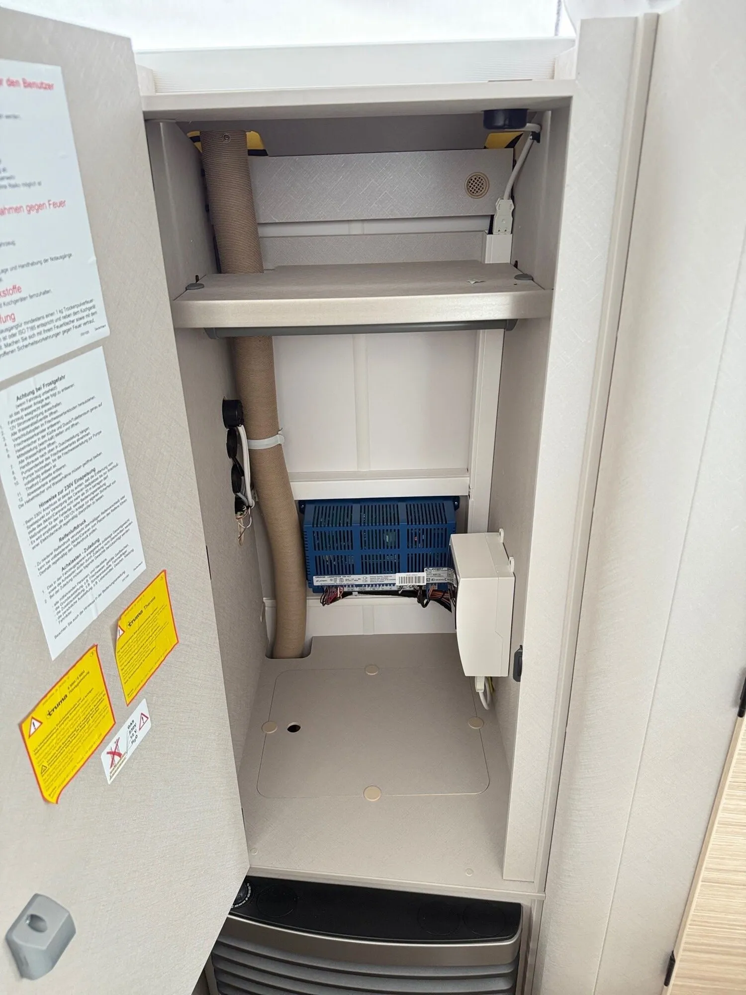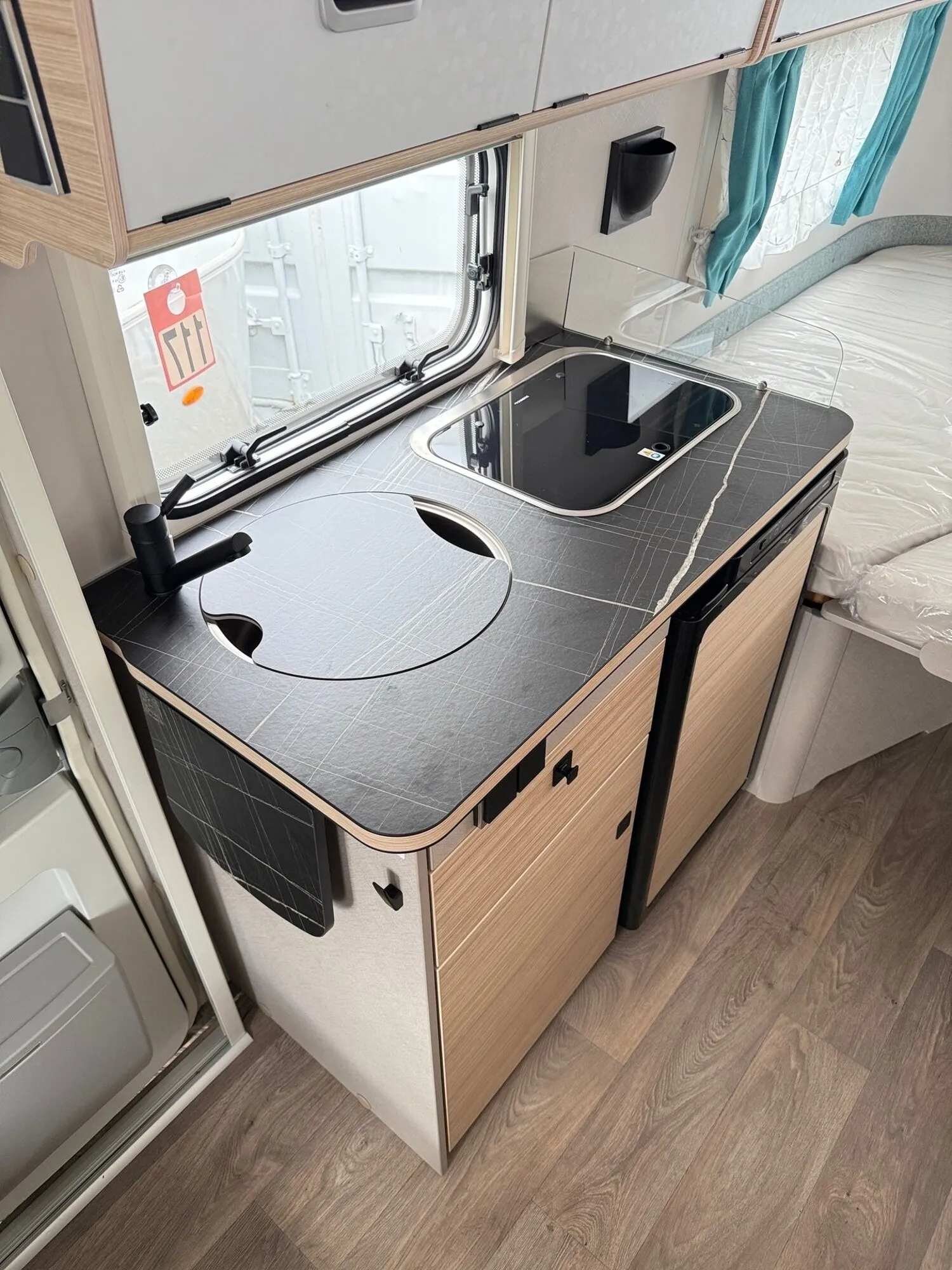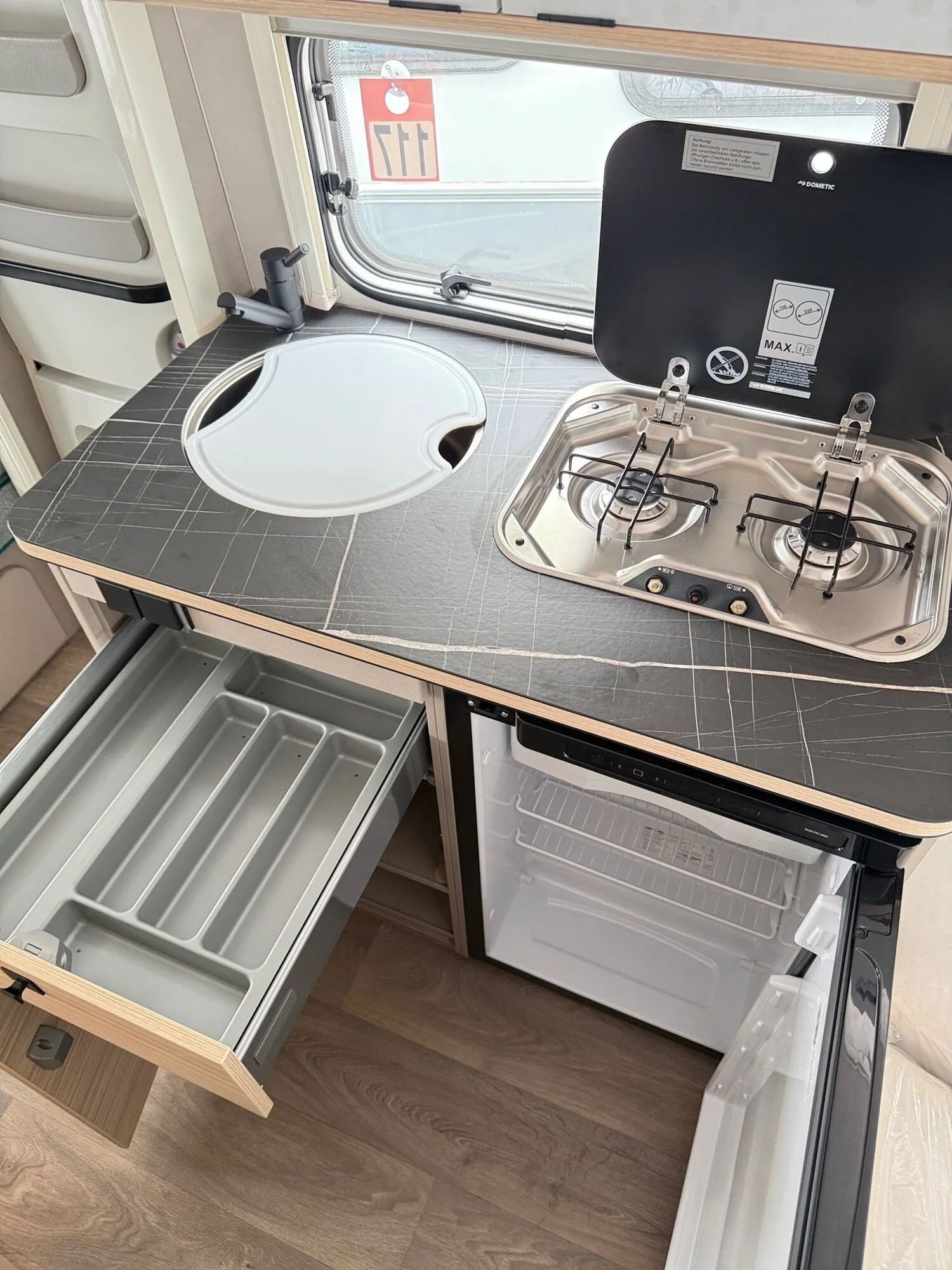 - Komfort-Paket (Fliegenschutz-Rolltür (gesamte Türhöhe), bedienfreundlich durch seitliche Führung, Komfort-Plissee-Rollos, Steckdosenpaket (2 x 230 V Steckdosen und 1 x USB-Doppelsteckdose), Abfalleimer in Eingangstür integriert, Spülenabdeckung mit Schneidebrett für Edelstahlspüle, Zusätzlicher Vergrößerungsspiegel mit Magnethalterung)
