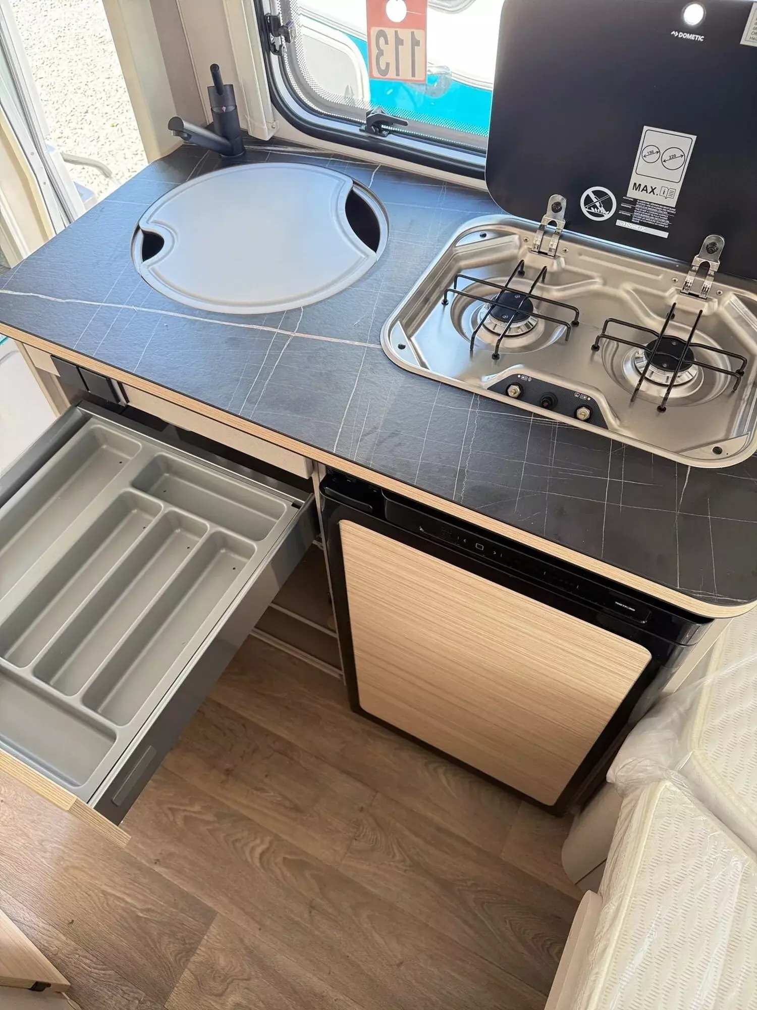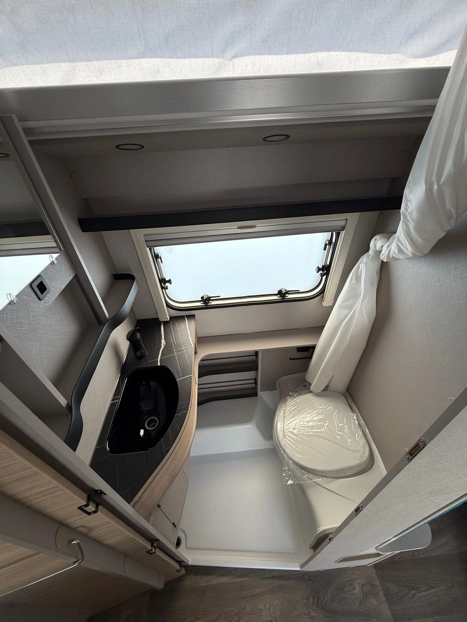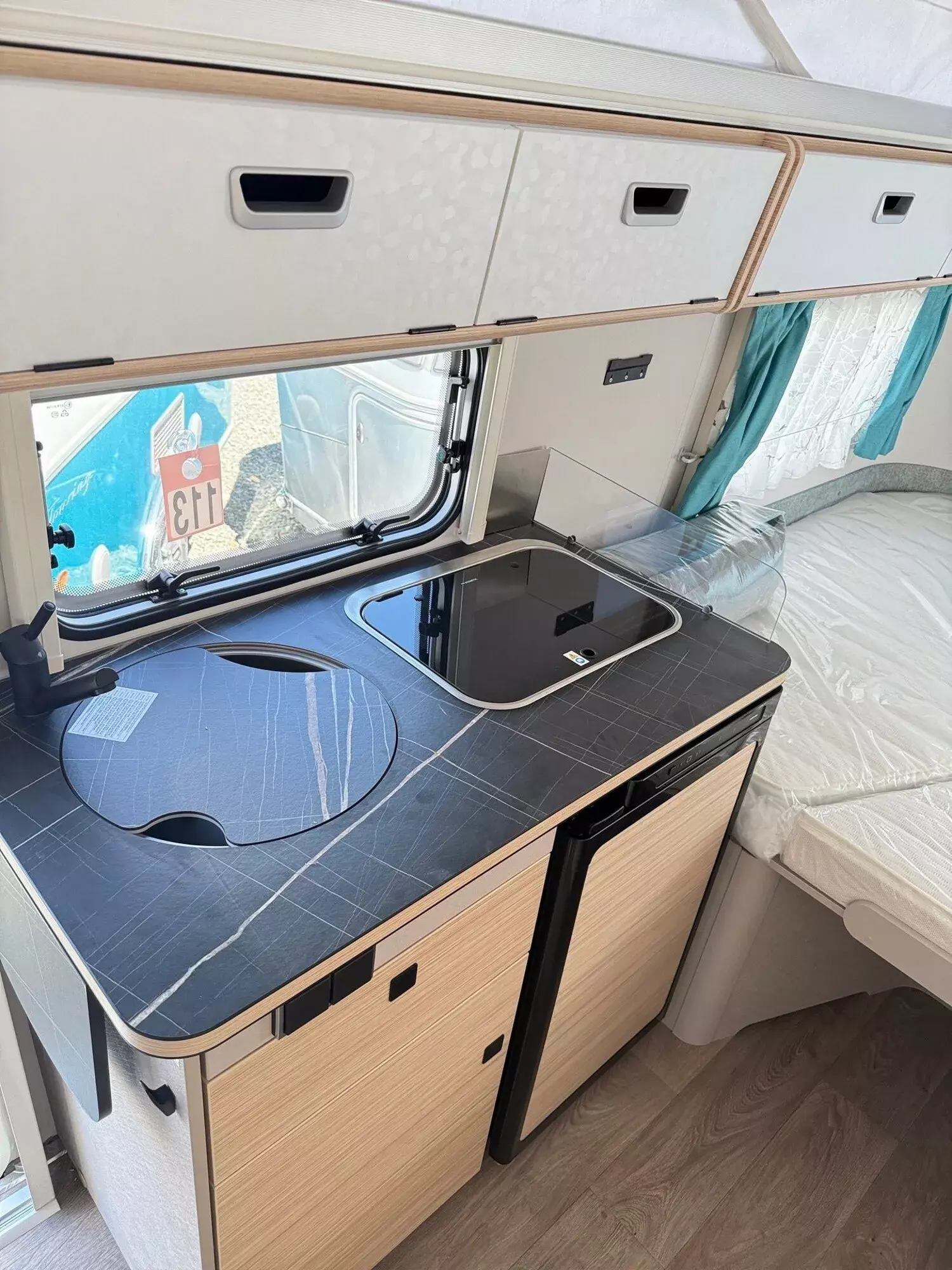 - Komfort-Paket (Fliegenschutz-Rolltür (gesamte Türhöhe), bedienfreundlich durch seitliche Führung, Komfort-Plissee-Rollos, Steckdosenpaket (2 x 230 V Steckdosen und 1 x USB-Doppelsteckdose), Abfalleimer in Eingangstür integriert, Spülenabdeckung mit Schneidebrett für Edelstahlspüle, Zusätzlicher Vergrößerungsspiegel mit Magnethalterung)