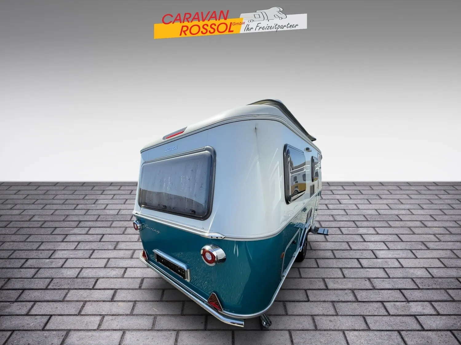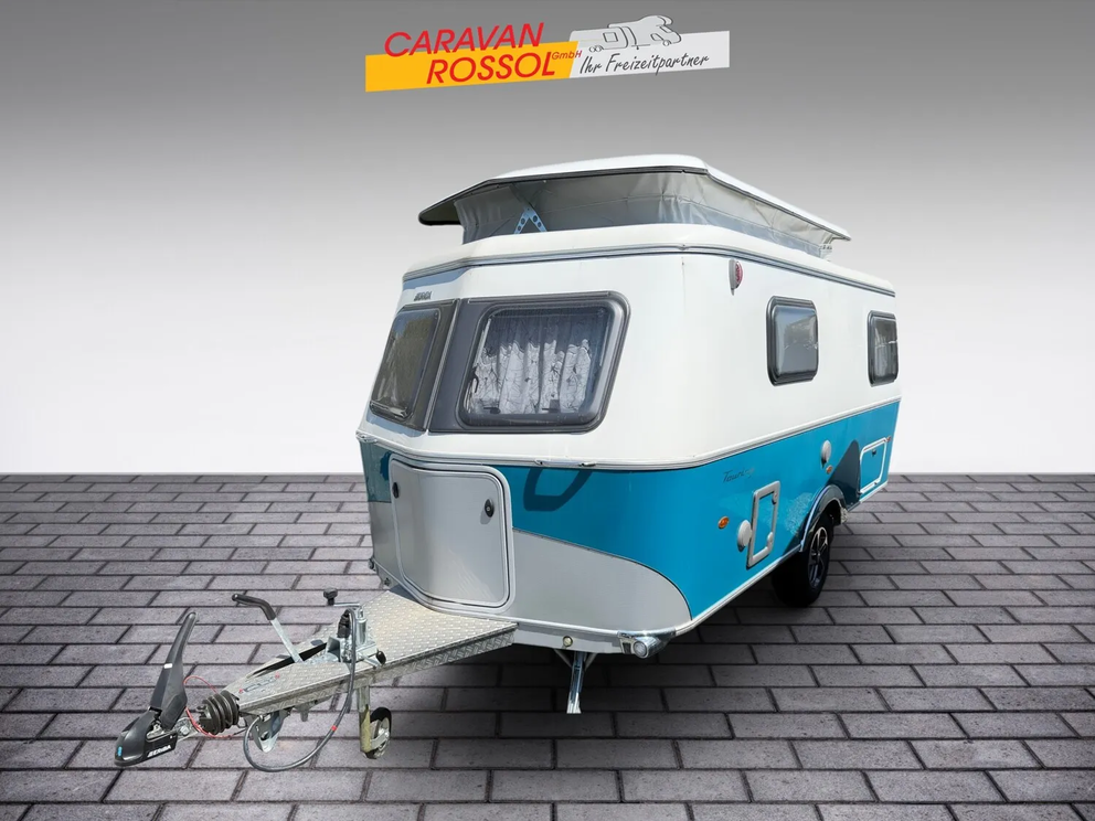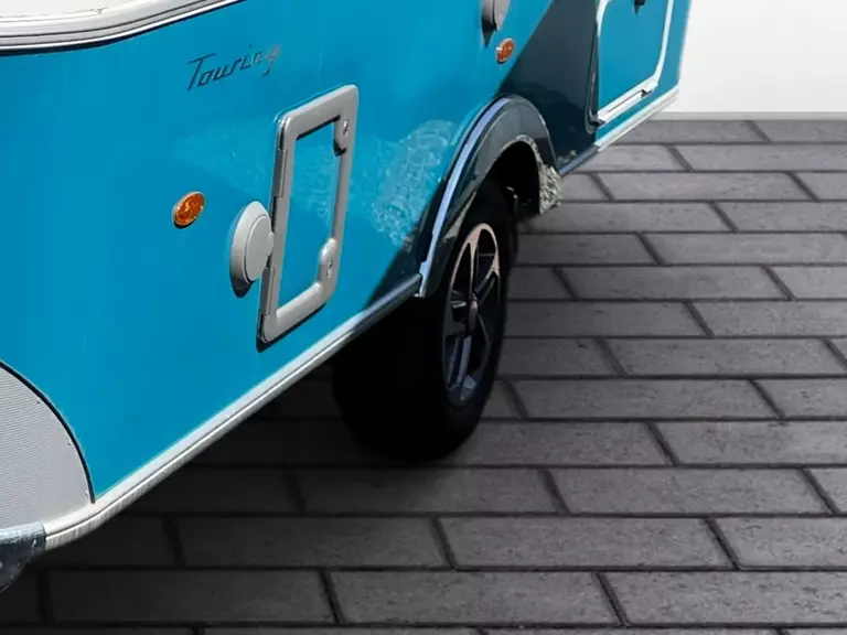 - Harbour Blue Edition (Seitenwände, Bug und Heck in Glattblech, Farbe White Harbour Blue, Stoffkombination Orlando für Ausstattungslinie Urban, Möbeldekor Tindari, Chrompaket mit Außenanbauteilen in Chrom und Radlaufblende sowie Rückleuchten in Retrodesign, Leichtmetallfelgen ERIBA 5-Stern-Doppelspeiche, anthrazit, Steinschlagschutzblech, Bumper aus Edelstahl, Ambientelicht XL mit indirektem Licht oberhalb der Dachstauschränke und zwei zusätzliche ERIBA Multifunktions-Akkuleuchten, 2 Kissen mit Bezug)