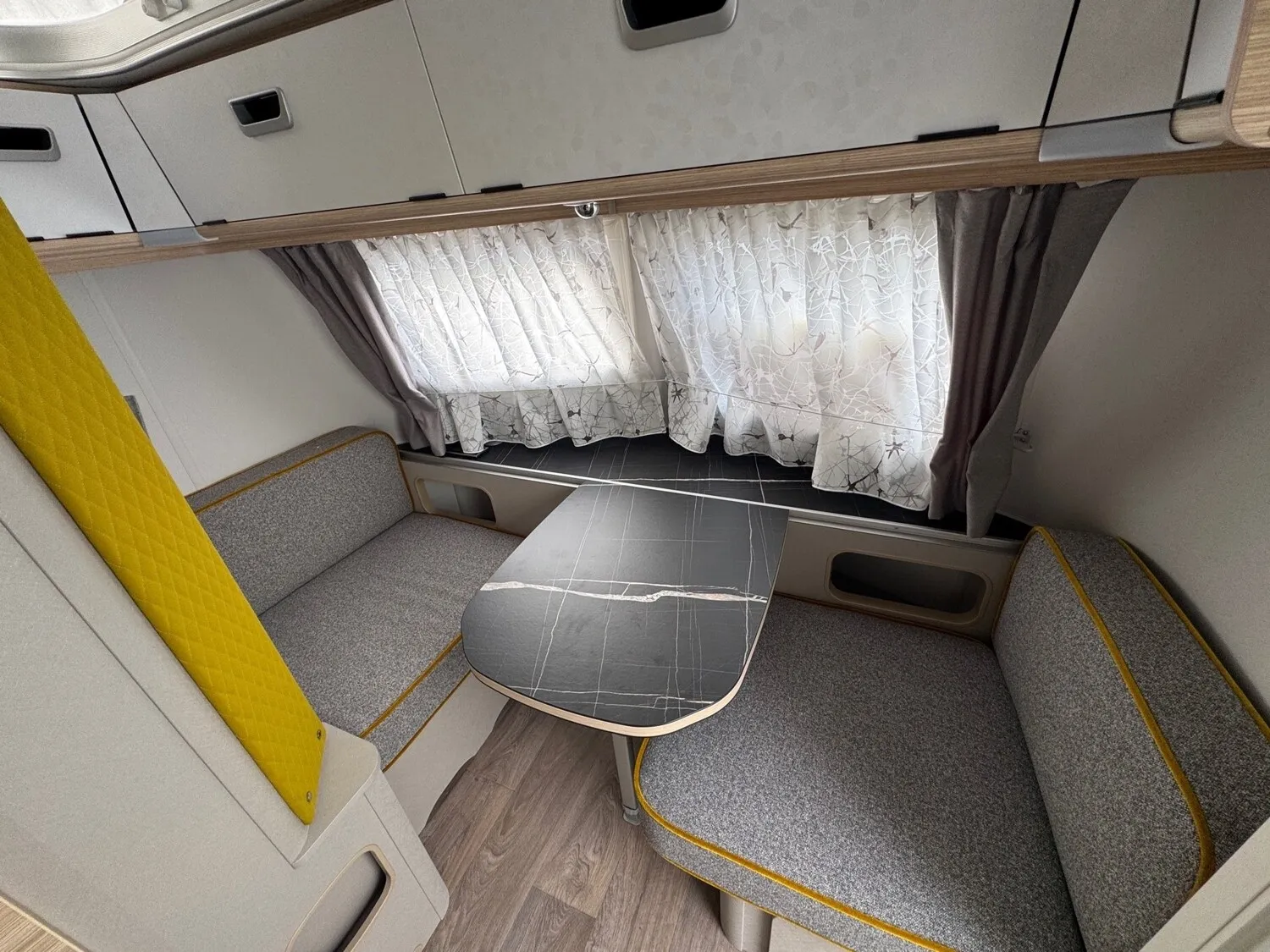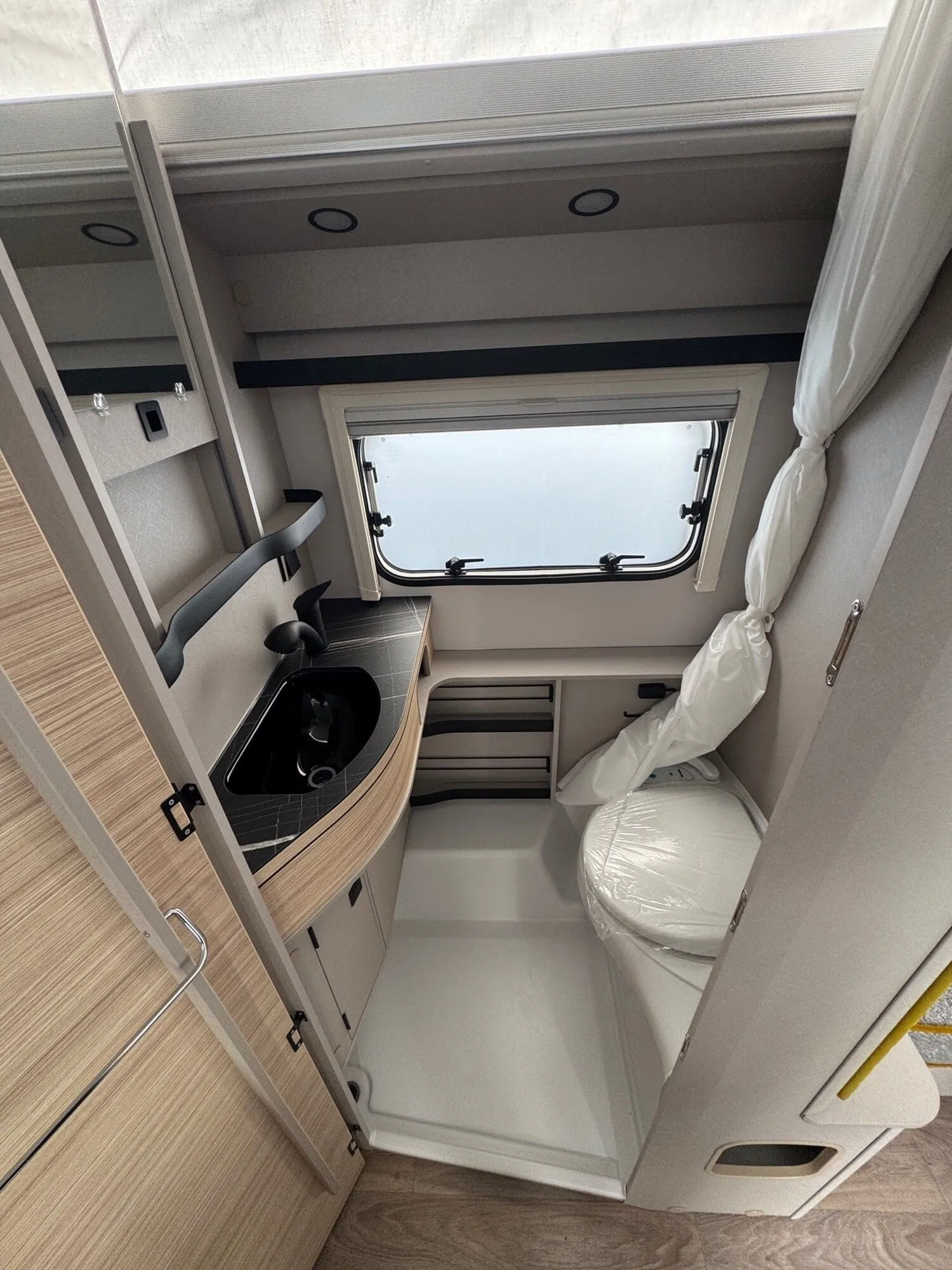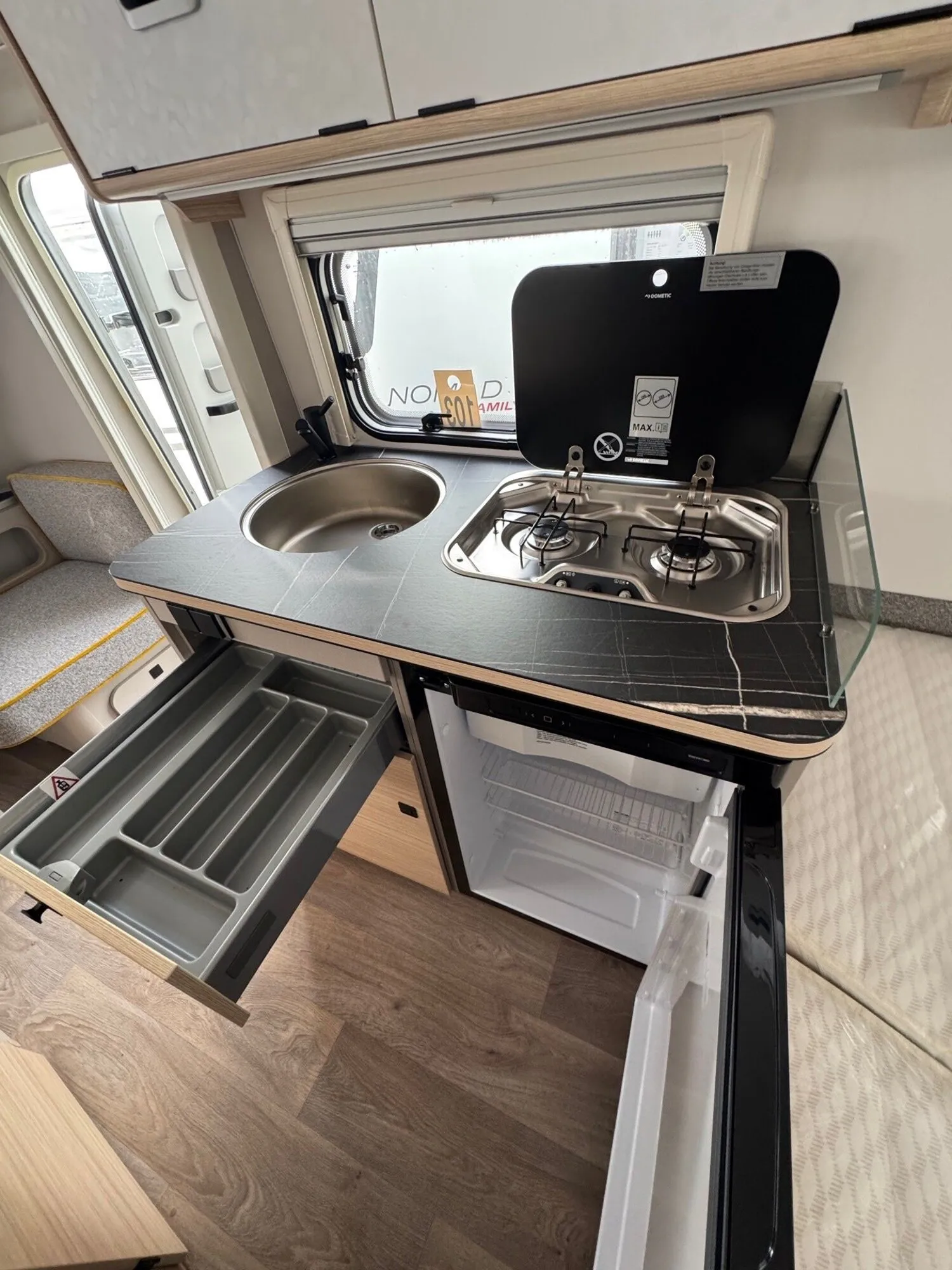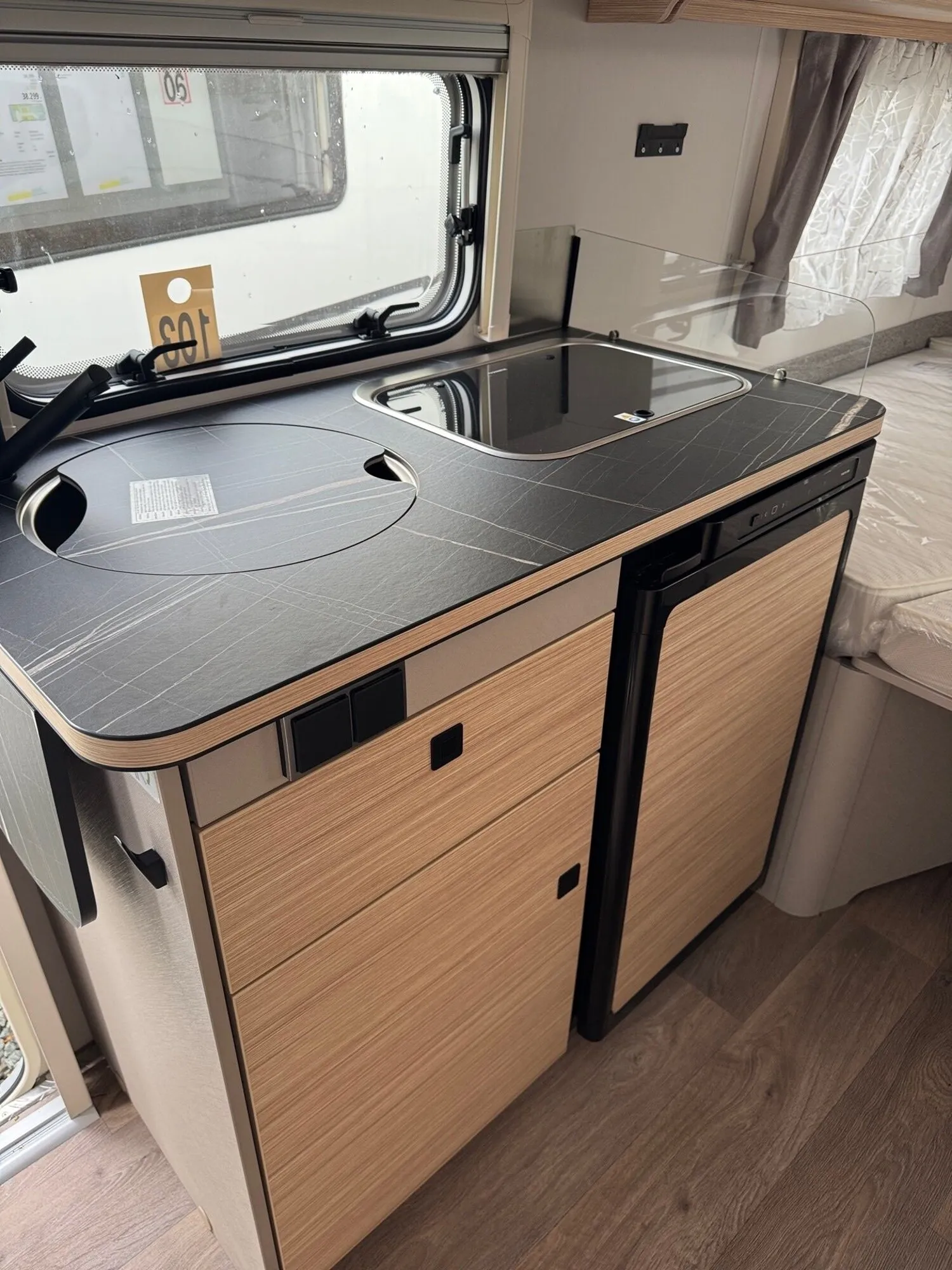 - Komfort-Paket (Fliegenschutz-Rolltür (gesamte Türhöhe), bedienfreundlich durch seitliche Führung, Komfort-Plissee-Rollos, Steckdosenpaket (2 x 230 V Steckdosen und 1 x USB-Doppelsteckdose), Abfalleimer in Eingangstür integriert, Spülenabdeckung mit Schneidebrett für Edelstahlspüle, Zusätzlicher Vergrößerungsspiegel mit Magnethalterung)