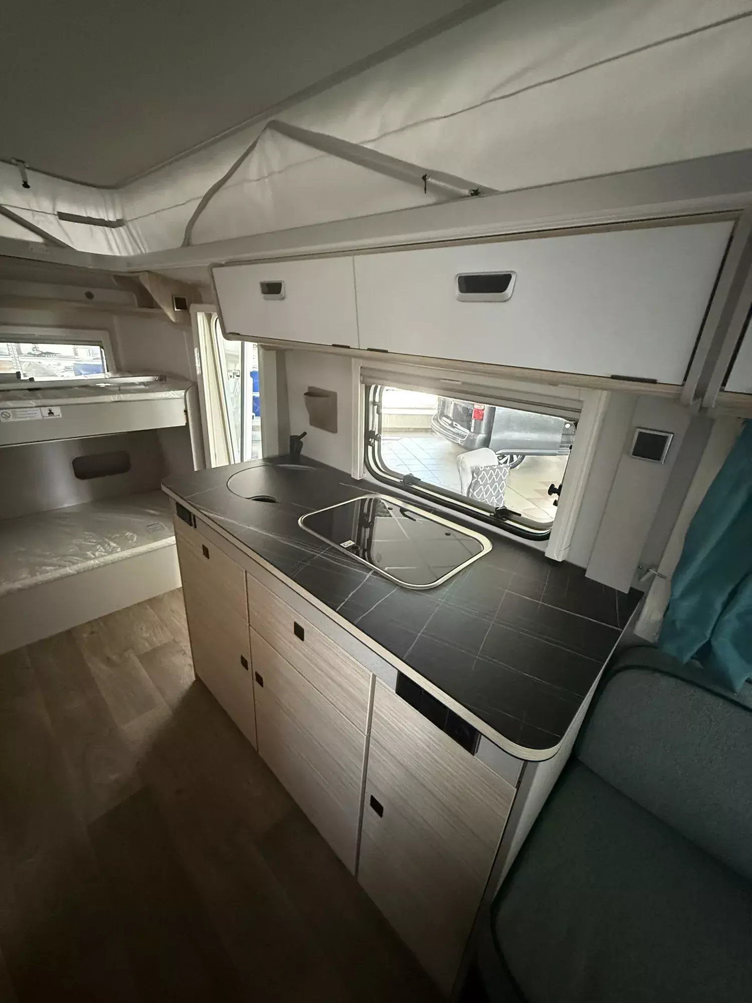 - Komfort Paket (Fliegenschutz-Rolltür (gesamte Türhöhe), bedienfreundlich durch seitliche Führung, Komfort-Plissee-Rollos, Steckdosenpaket (2 x 230 V Steckdosen und 1 x USB-Doppelsteckdose), Spülenabdeckung mit Schneidebrett, Abfalleimer in Eingangstür integriert, Zusätzlicher Vergrößerungsspiegel mit Magnethalterung)