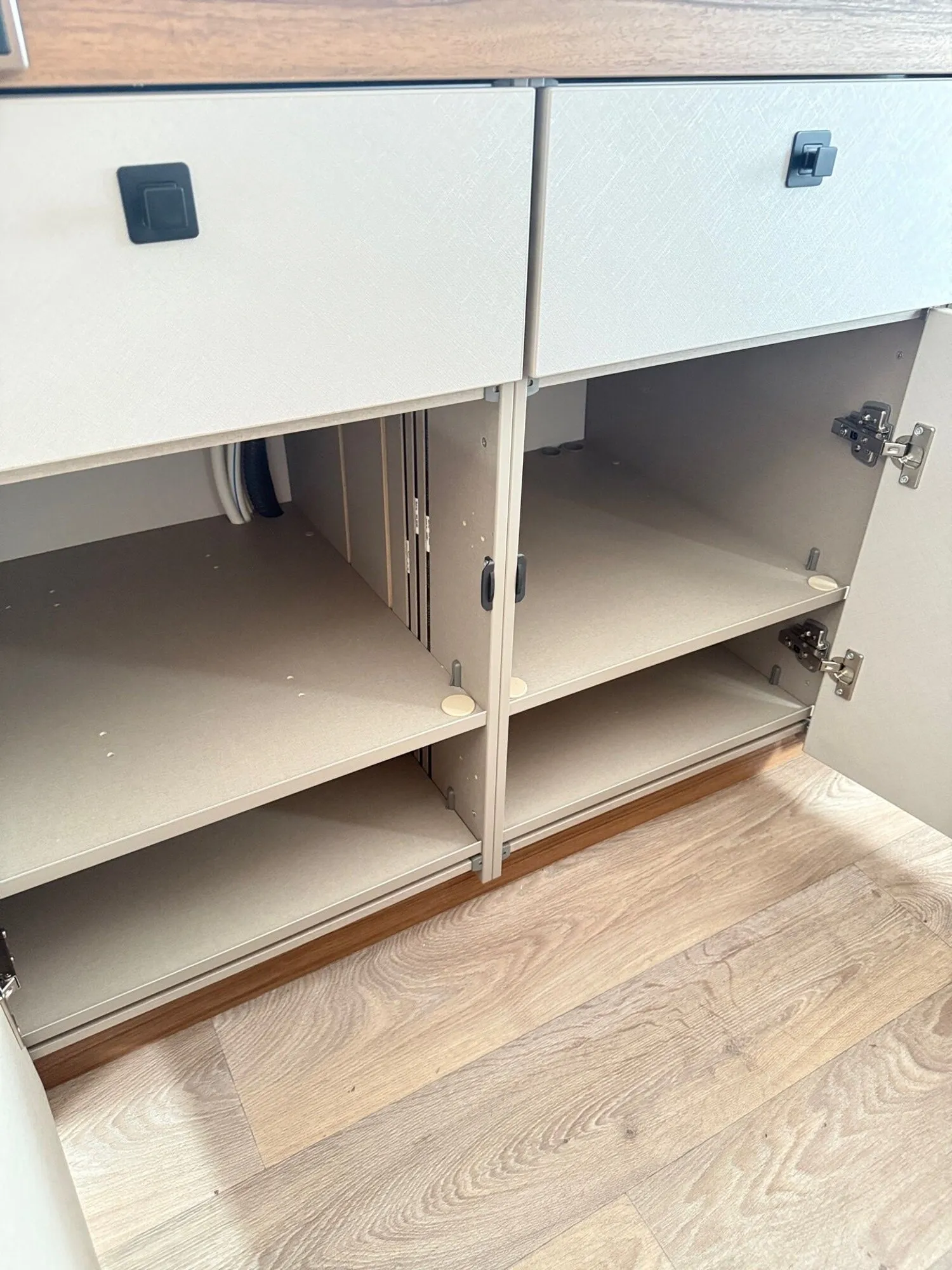 - Komfort-Paket (Fliegenschutz-Rolltür (gesamte Türhöhe), bedienfreundlich durch seitliche Führung, Komfort-Plissee-Rollos, Steckdosenpaket (2 x 230 V Steckdosen und 1 x USB-Doppelsteckdose), Abfalleimer in Eingangstür integriert, Spülenabdeckung mit Schneidebrett für Edelstahlspüle, Zusätzlicher Vergrößerungsspiegel mit Magnethalterung)