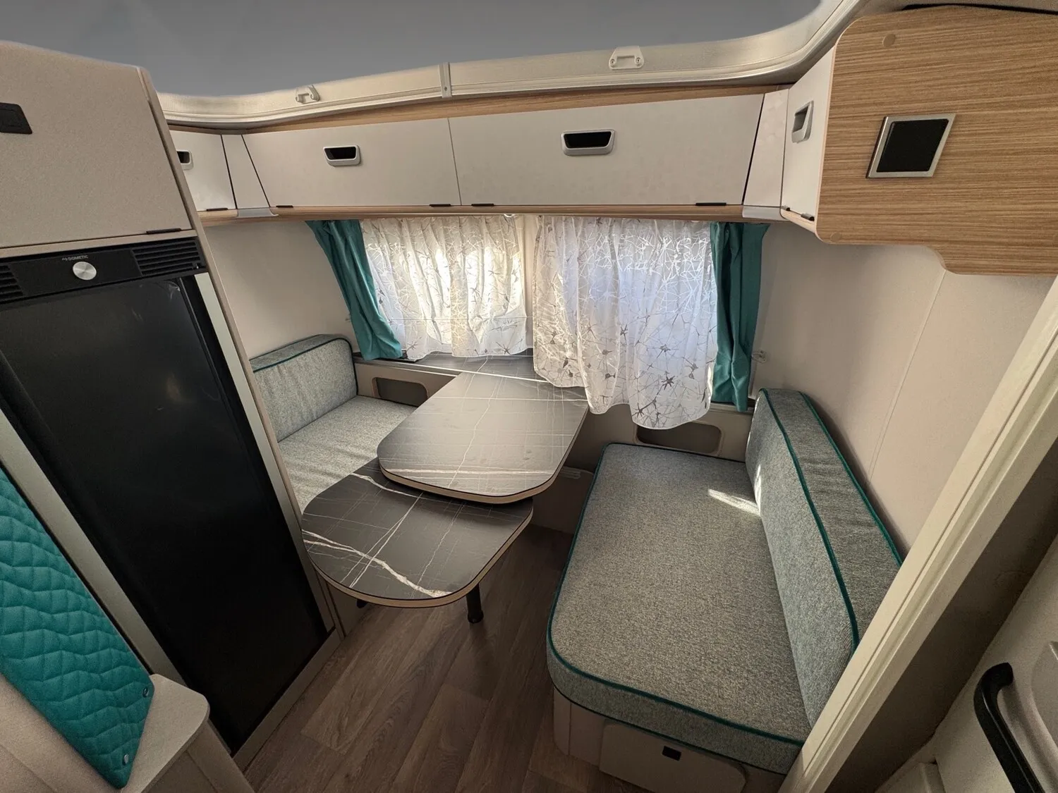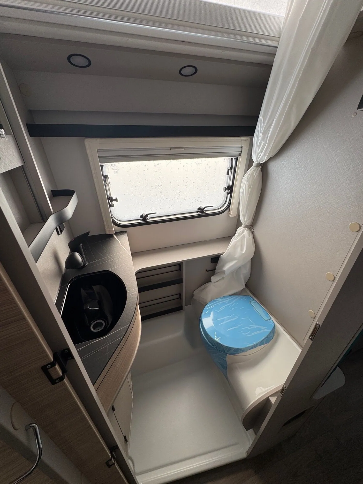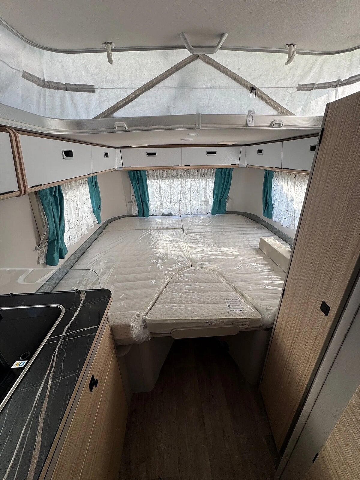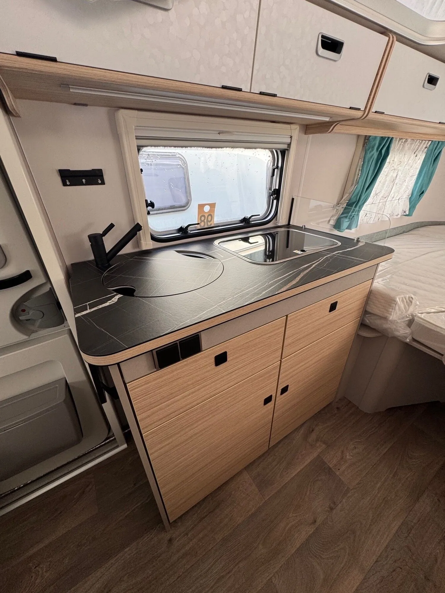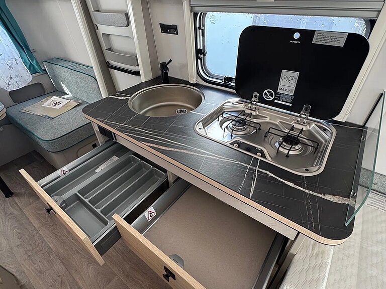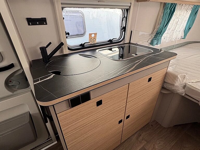 - Komfort-Paket (Fliegenschutz-Rolltür (gesamte Türhöhe), bedienfreundlich durch seitliche Führung, Komfort-Plissee-Rollos, Steckdosenpaket (2 x 230 V Steckdosen und 1 x USB-Doppelsteckdose), Abfalleimer in Eingangstür integriert, Spülenabdeckung mit Schneidebrett für Edelstahlspüle, Zusätzlicher Vergrößerungsspiegel mit Magnethalterung)