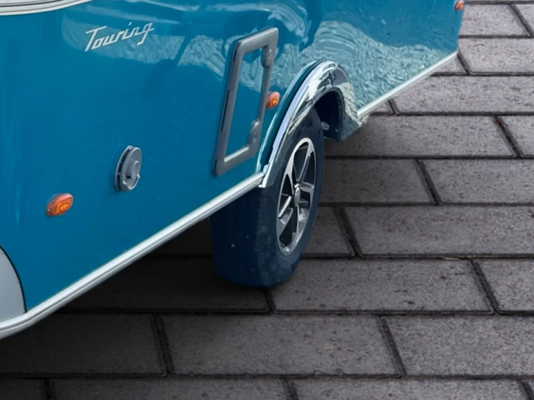 - Harbour Blue Edition (Seitenwände, Bug und Heck in Glattblech, Farbe White Harbour Blue, Stoffkombination Orlando für Ausstattungslinie Urban, Möbeldekor Tindari, Chrompaket mit Außenanbauteilen in Chrom und Radlaufblende sowie Rückleuchten in Retrodesign, Leichtmetallfelgen ERIBA 5-Stern-Doppelspeiche, anthrazit, Steinschlagschutzblech, Bumper aus Edelstahl, Ambientelicht XL mit indirektem Licht oberhalb der Dachstauschränke und zwei zusätzliche ERIBA Multifunktions-Akkuleuchten, 2 Kissen mit Bezug)